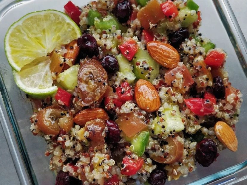 Si buscás una receta fresca, liviana y con un giro original, este tabulé con quinoa, damascos secos y almendras tostadas es ideal. Se prepara en pocos pasos, es súper versátil y, además, es apto para quienes siguen una alimentación sin gluten o plant based. Perfecto para una comida rápida en casa, como guarnición en una picada o incluso como opción para llevar al trabajo.