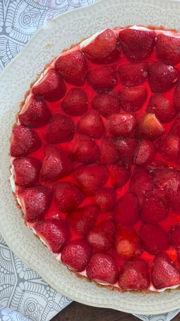 - Paso 5: Frío final: llevar nuevamente a la heladera hasta que la gelatina esté firme y la tarta bien fría.