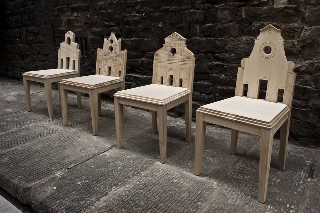 El diseñador italiano Cósimo de Vita y la tradicional empresa florentina Savio Firmino presentaron en la nueva edición del Fuorisalone esta línea de 16 sillas inspiradas en monumentos de todo el mundo.