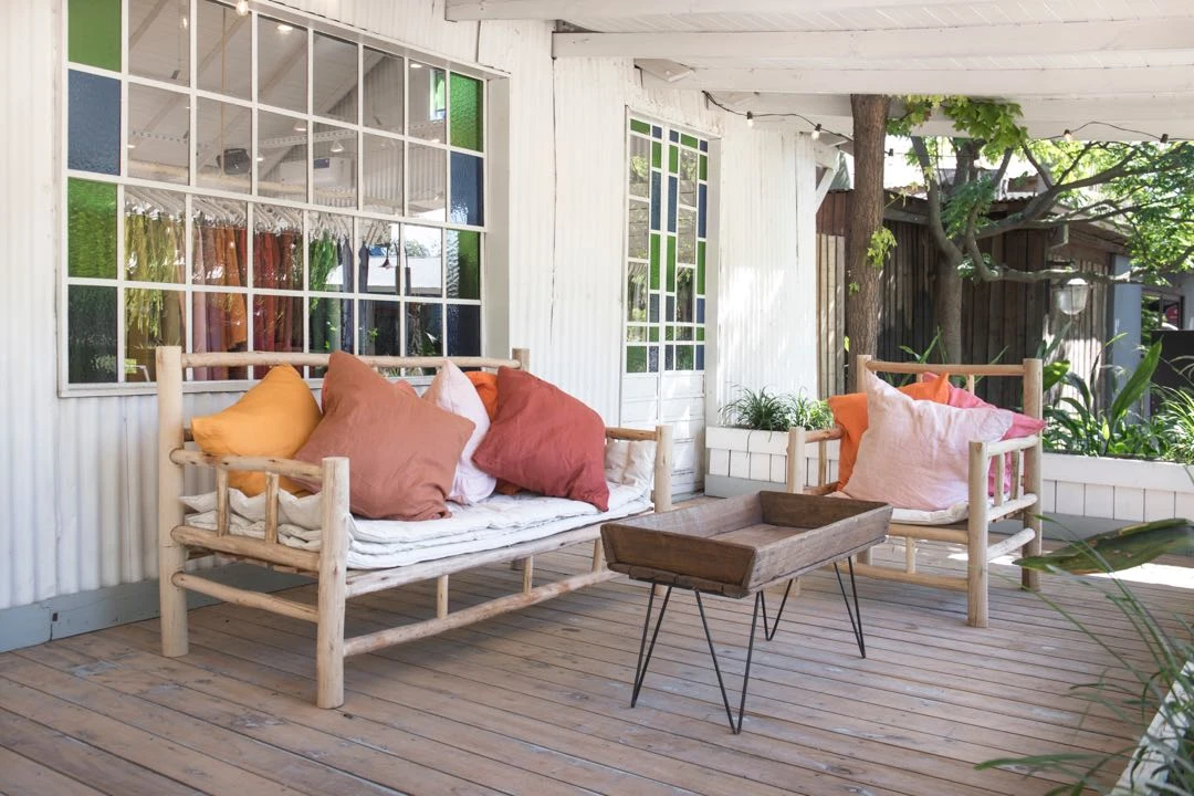 Maderas lavadas y con perfume a eucaliptos, géneros etéreos, azules añiles, fondos blancos. En el nuevo pop up store de Blue Sheep en el complejo La Aldea, de Pilar, hay una fina sintonía que sabe a playa y relax.