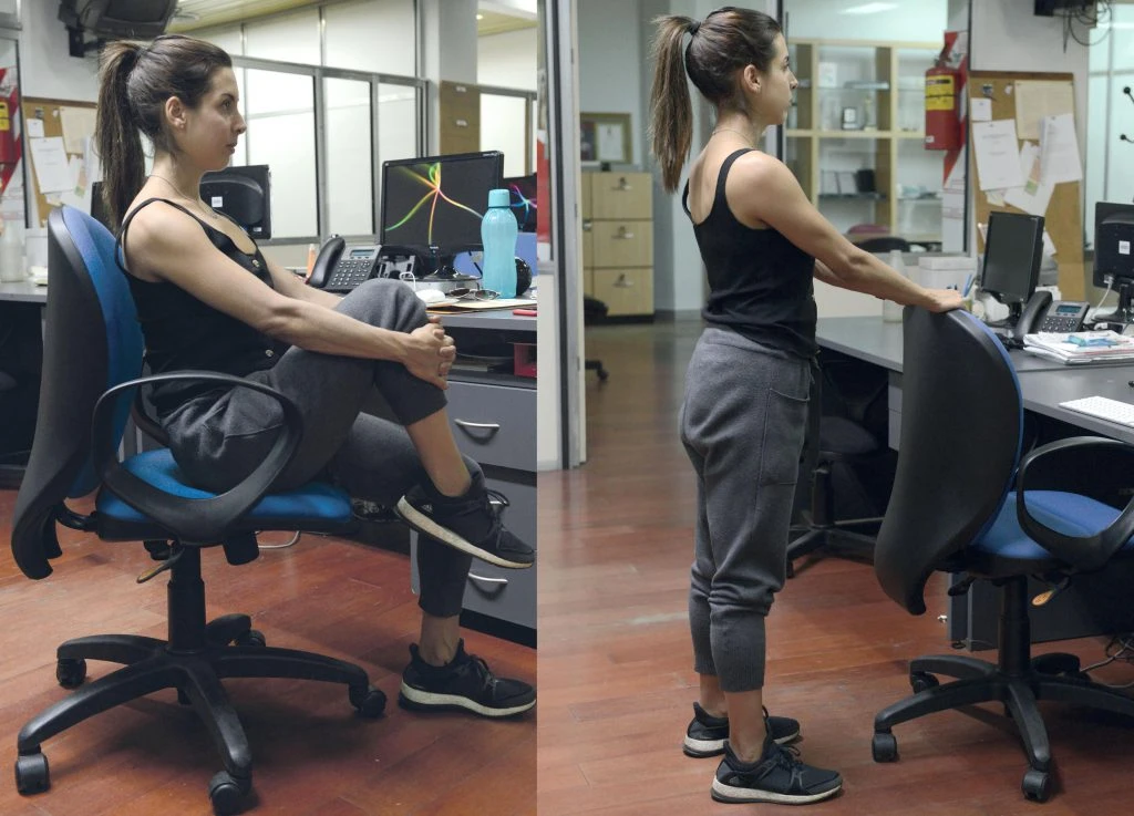 Algunas posturas las vamos a hacer paradas y otros en la silla. Si bien son sencillos, realizarlos de manera continua previene y alivia todas las tensiones generadas por la jornada laboral. Menos contracturas, más concentración y un espacio con mejor onda entre los compañeros.