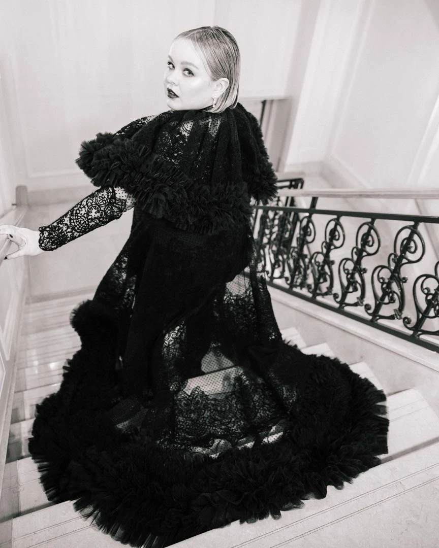 En cuanto a Nicola Coughland, la actriz deslumbró con un diseño gótico total black de Christian Siriano.