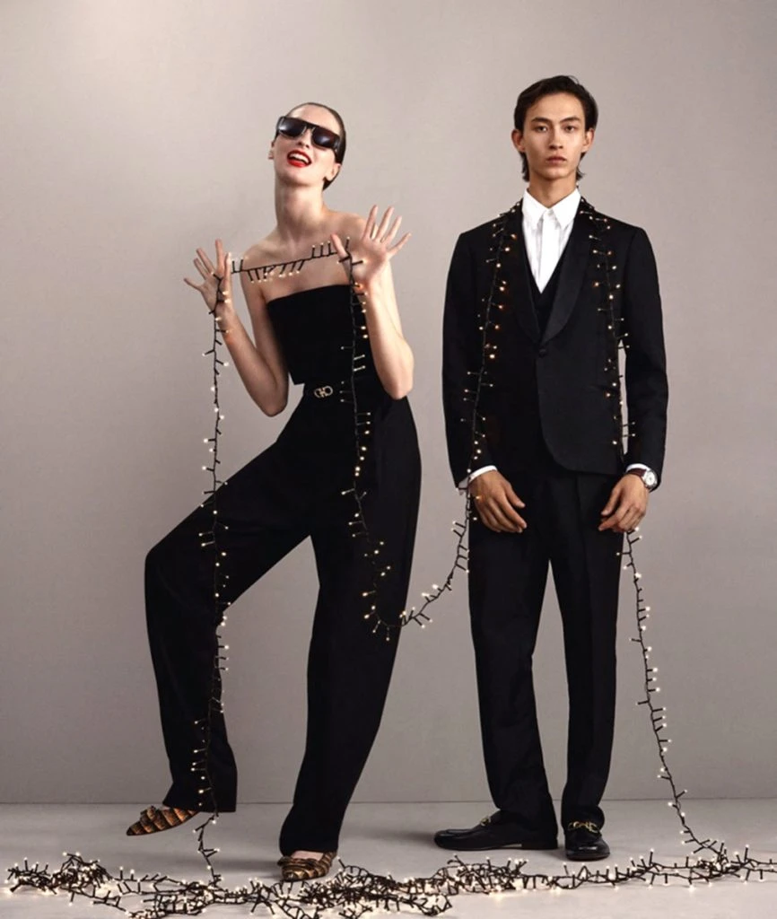 El reconocido fotógrafo Luca Khouri fue el encargado de retratar a los modelos con elementos festivos como guirnaldas brillantes, luces y bengalas, logrando así un espíritu navideño.