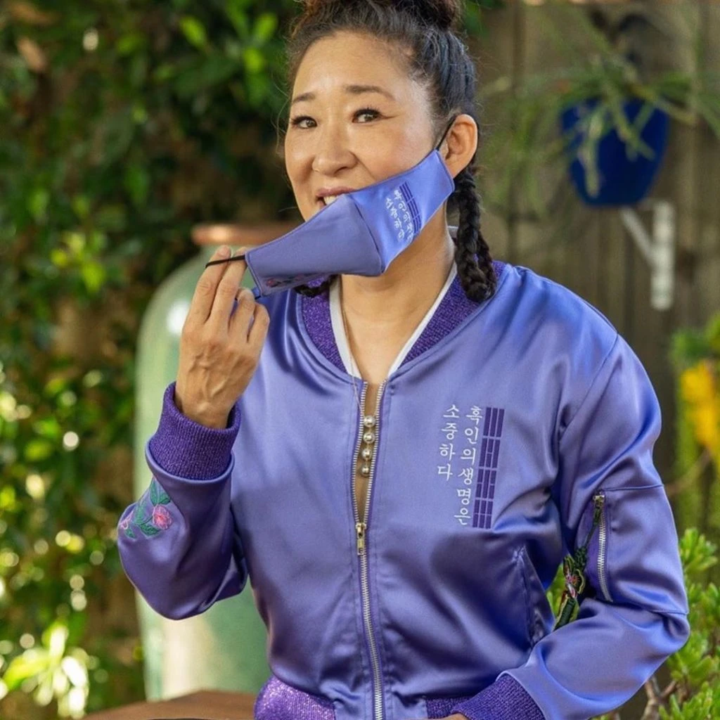 La actriz de Killing Eve comentó como conoció al creador de chaqueta, el diseñador Matthew Kim en Los Ángeles. Kim -de origen coreano- había creado una línea especial de T-shirts y hoodies apoyando al movimiento Black Lives Matter y Sandra quiso visibilizarla.
