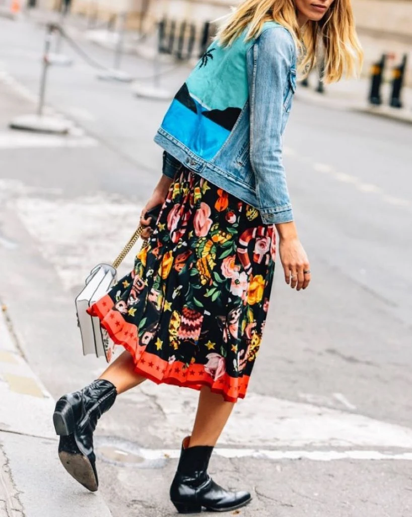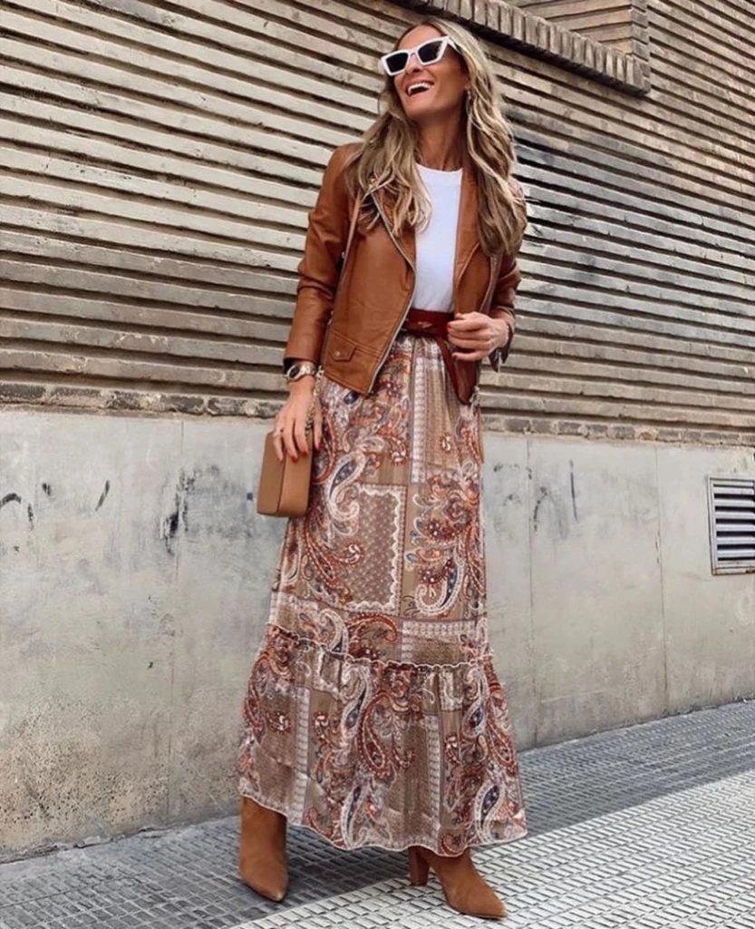 Las estampadas floreadas nos dan un aire boho chic. Agregale una chaqueta de cuero.