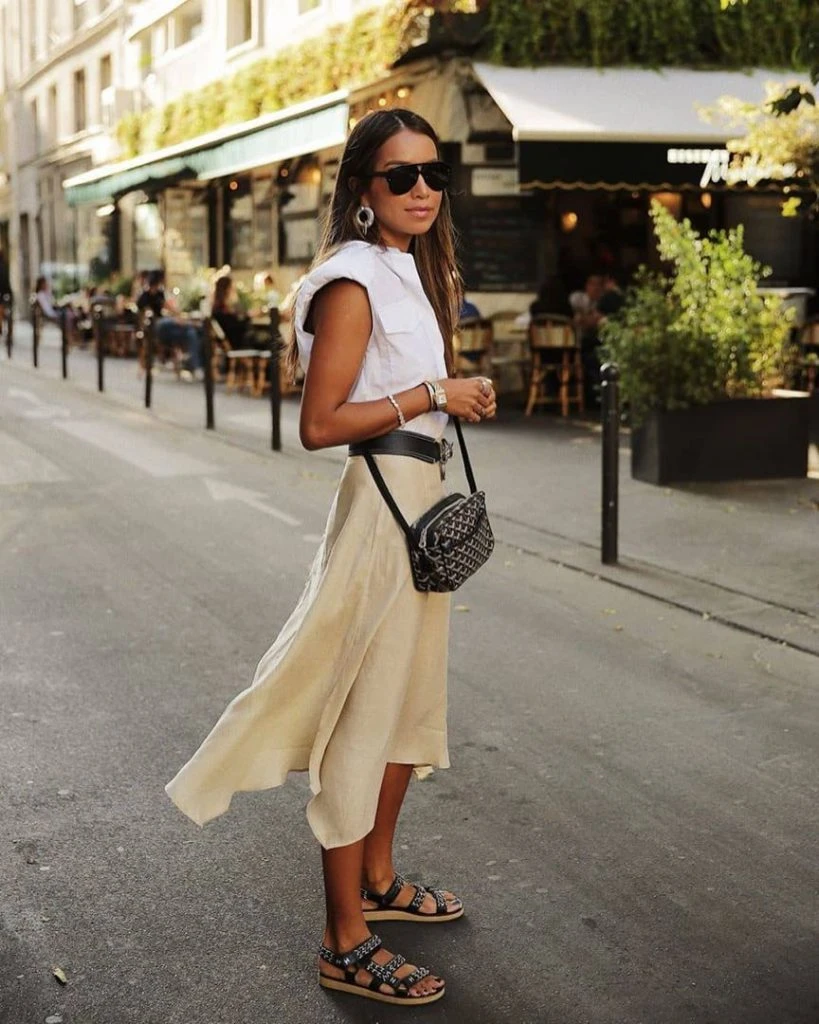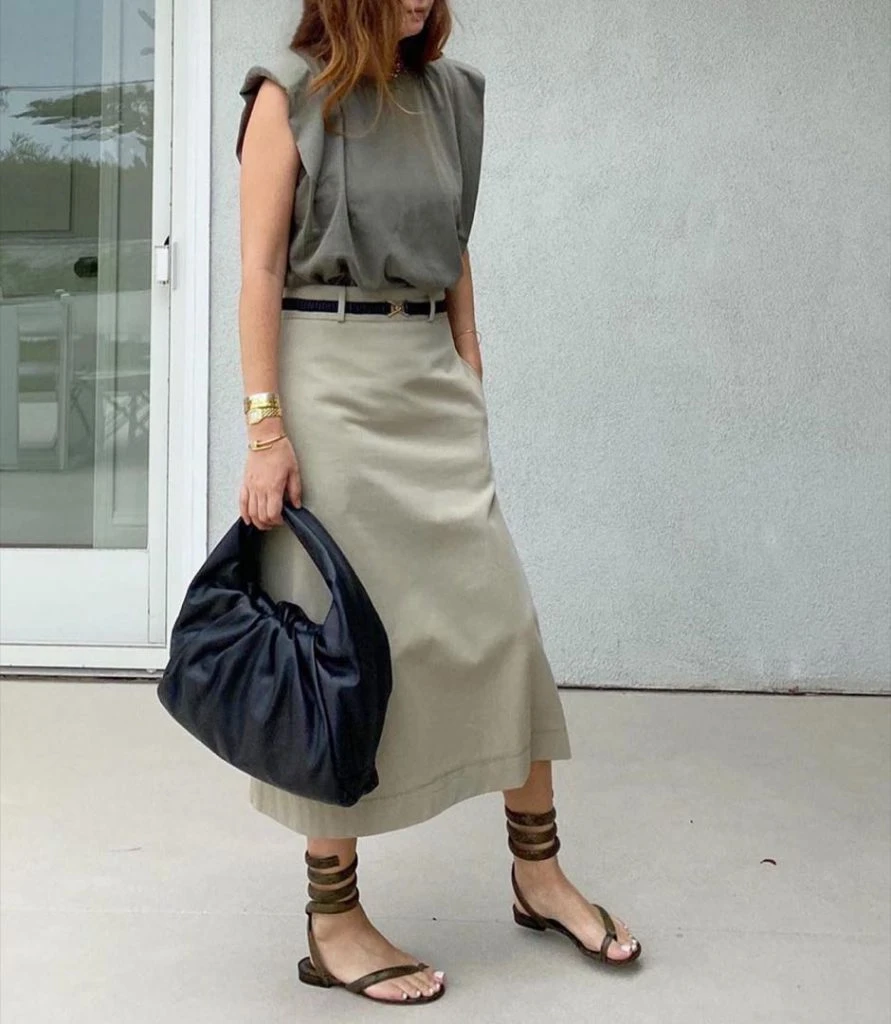 La falda midi que ya veníamos usando de temporadas anteriores, se quedará una temporada más. Llevala con cinturón para marcar la cintura y estilizar la figura.
