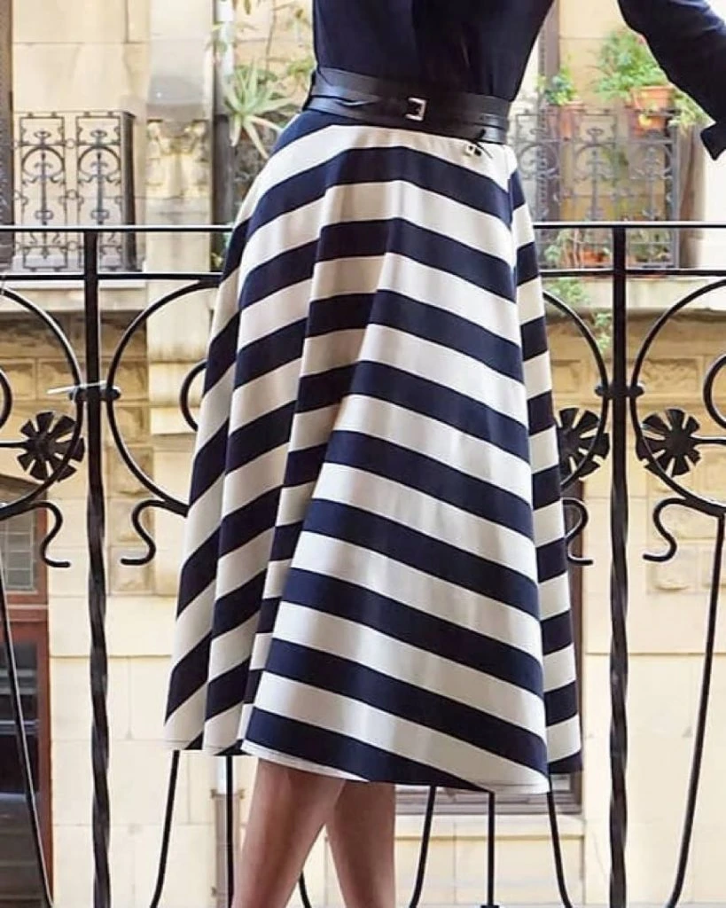 Tené en cuenta que ?las faldas de tiro alto siempre favorecen muchísimo más, ya que hacen que las piernas parezcan kilométricas.