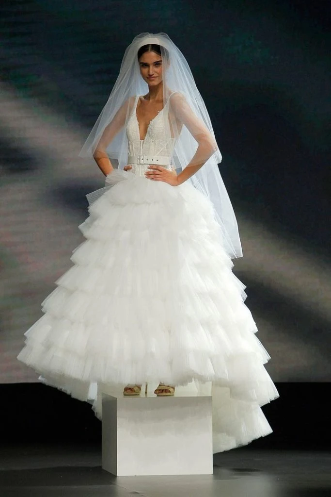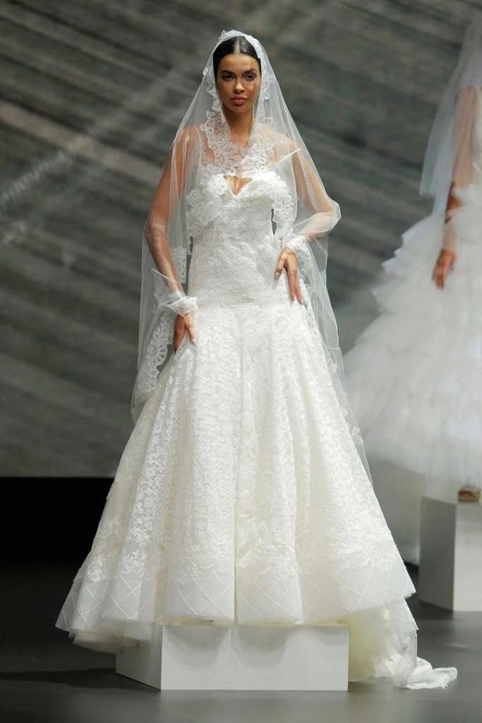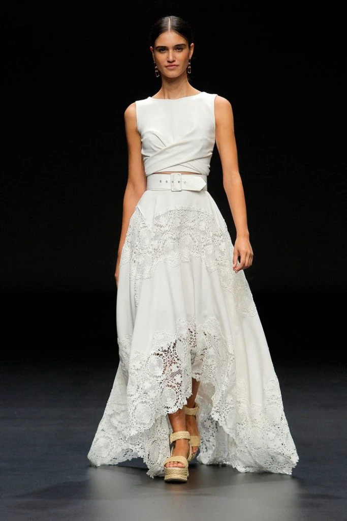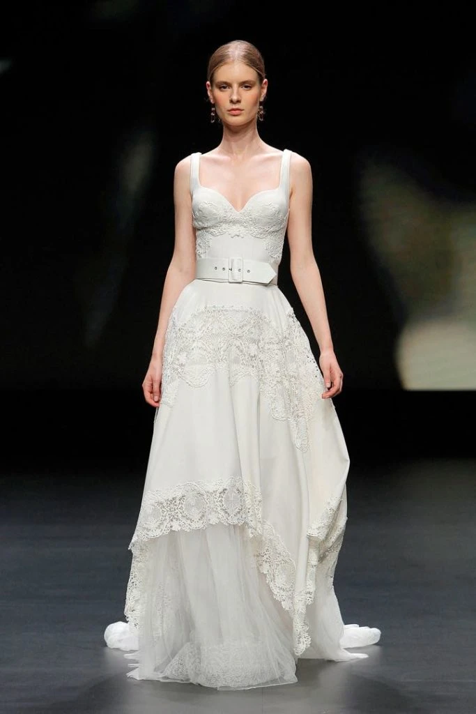 Los vestidos de novia románticos, enriquecidos con delicadas puntillas de algodón y crochet, así como los outfits que combinan encajes en los cuerpos y añaden un efecto transparente tan sugerente como elegante.