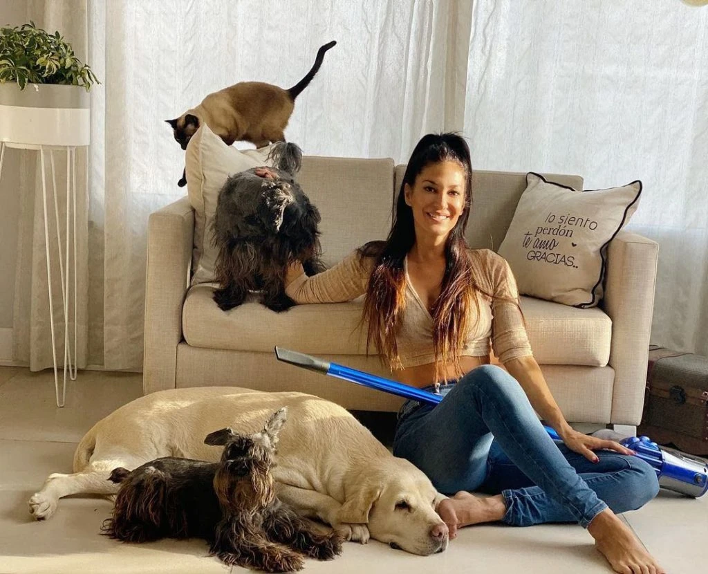 Recuerda a su primera mascota, Brako, que sufrió cuando ella se mudó a un departamento: "Yo le decía “mi rey”. Me lo regaló un novio cuando tenía 20 años. A los 27 me fui a vivir sola a un departamento. La primera noche me lo llevé, pero estaba acostumbrado al parque, así que pasaba tres noches en mi casa y tres en lo de mis viejos. Así estuve un año. Después se enfermó de cáncer. Le habían dado un mes de vida pero lo llevé a hacer un tratamiento de inmunoterapia y eso le permitió vivir un año más. Me acuerdo que me habían ofrecido hacer temporada con buena plata, pero me quedé… y menos mal, porque en febrero falleció. Cuando me mudé la fui a buscar a Mulata. Así que ellos se conocieron y vivieron juntos".