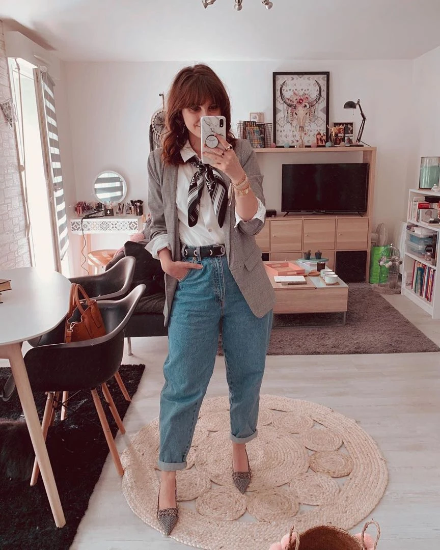 Para un look más arriba, más arreglado, lo podés llevar con una blusa con mangas farol, un blazer o un top con brillos.