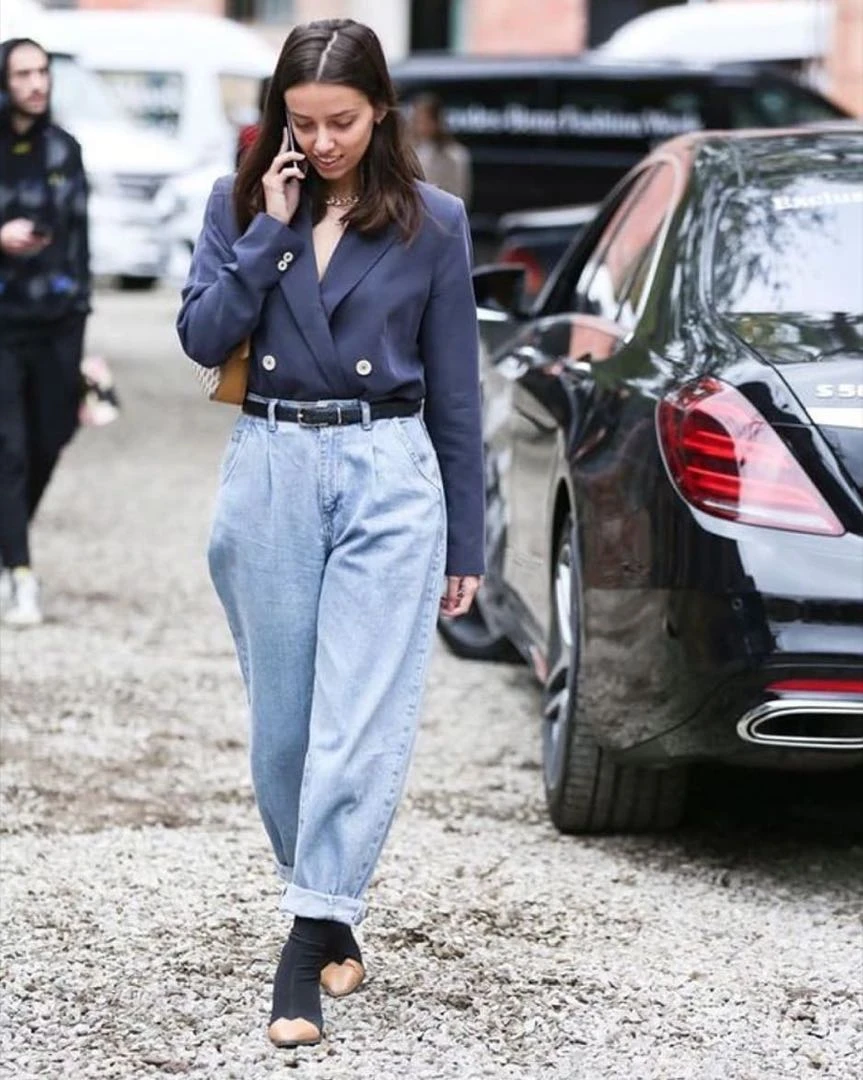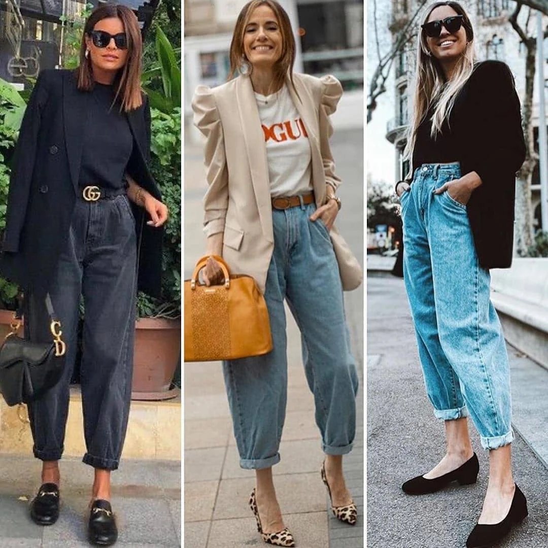 El pantalón slouchy es súper versátil: se lleva con zapatillas, zapatos de taco tipo stiletto, con sandalias o botas cortas. Los tobillos quedan al descubierto ya que el ruedo se arremanga por arriba de éstos.