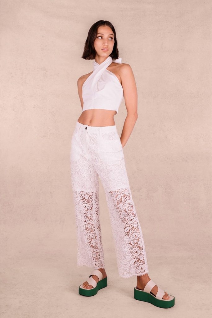 Los pantalones de encaje fueron una de las prendas protagonistas de toda la colección.