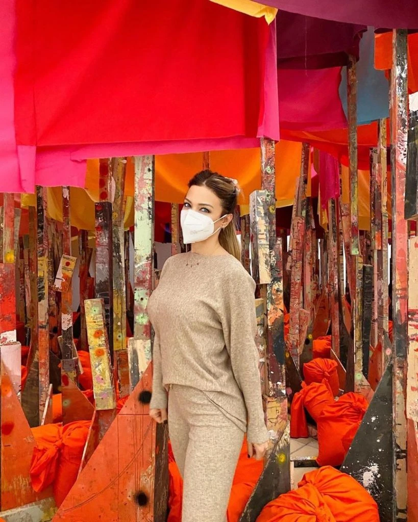 Un look matchy matchy para Evangelina Anderson, quien eligió este conjunto de lanilla en color camel para un look informal.