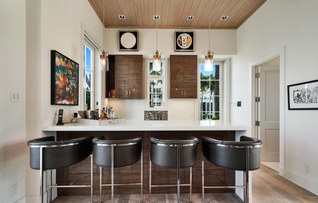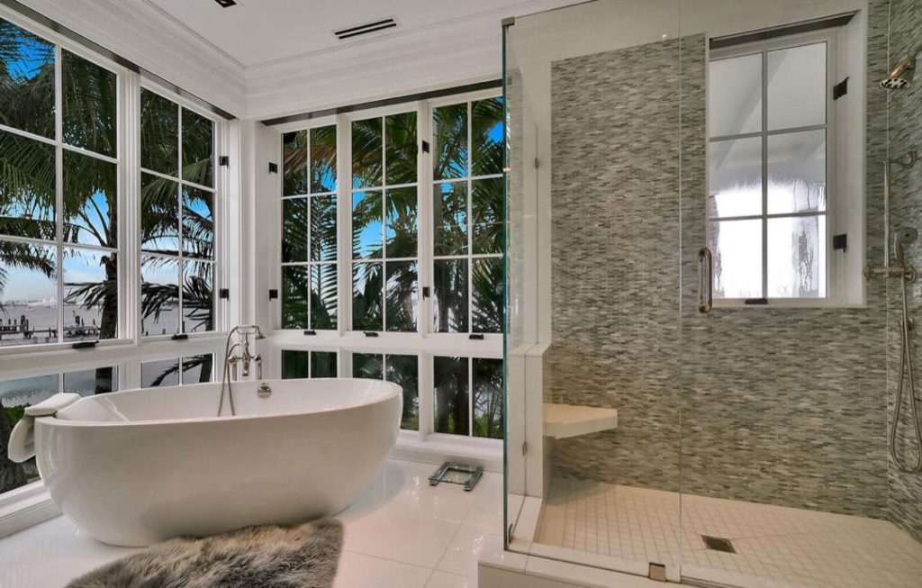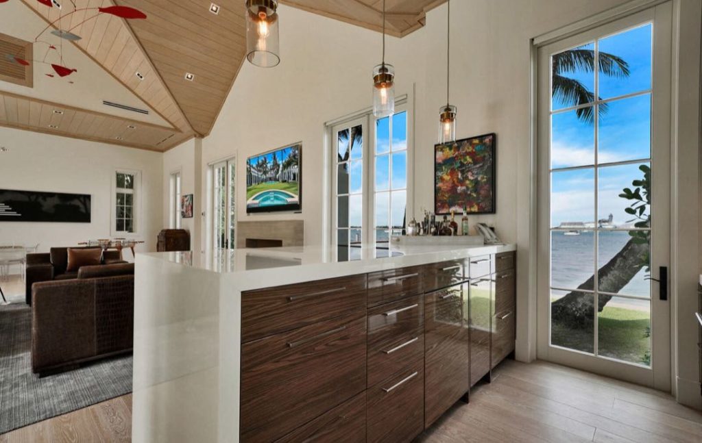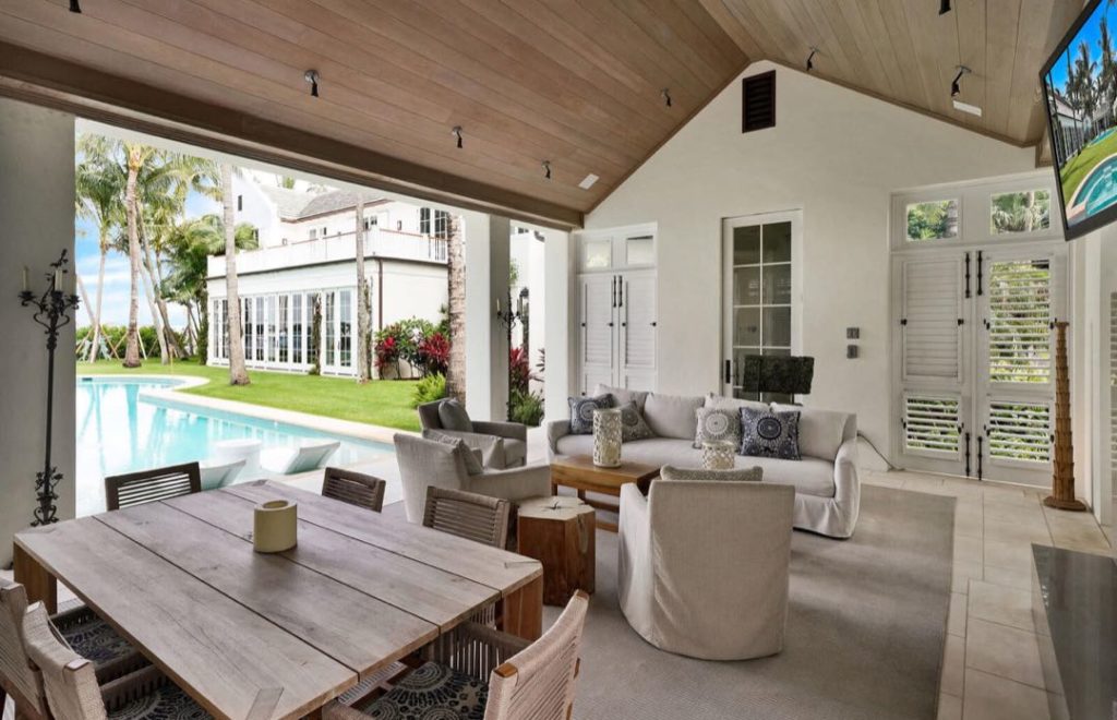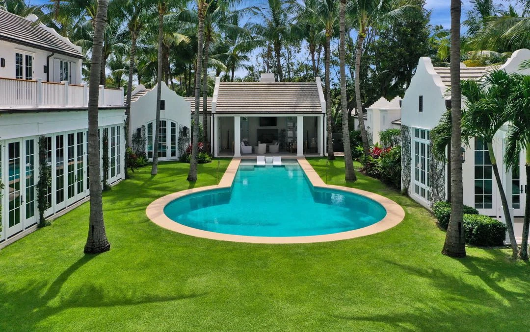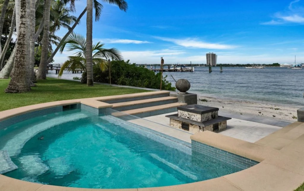 Pero el lujo está en el exterior, en el área de la pileta con forma de ojo de cerradura y el spa con hidromasaje con entrada a la laguna de Lake Worth y a su playa de arena.