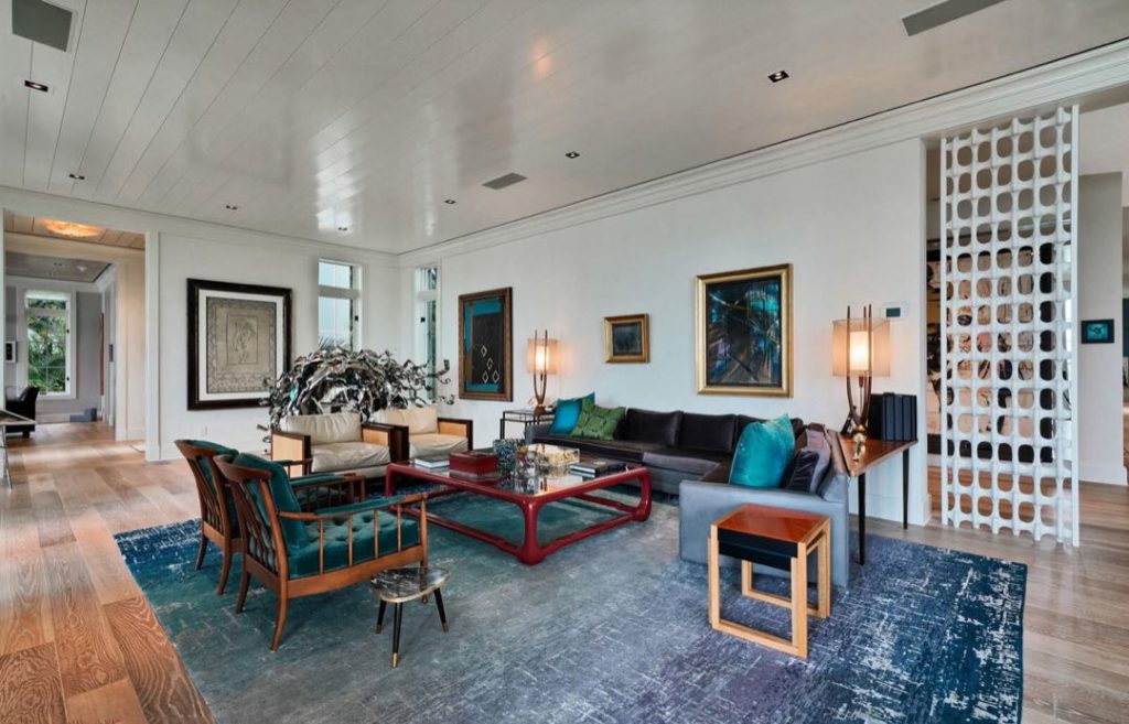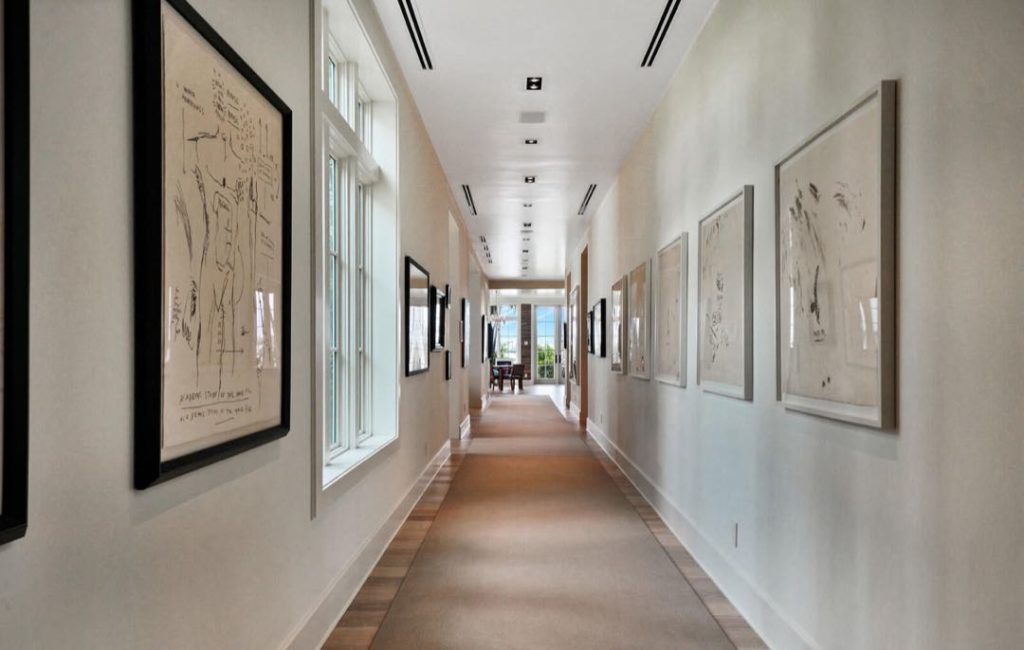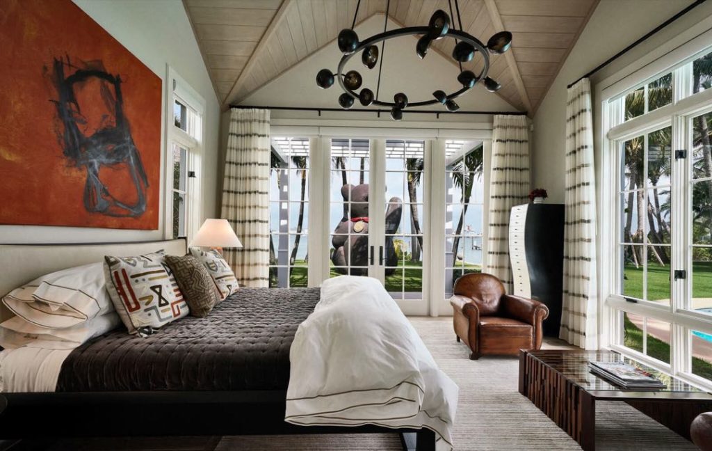 El área principial tiene siete dormitorios, seis baños, un gimnasio bien equipado (¡por supuesto!) y una cava de vinos.