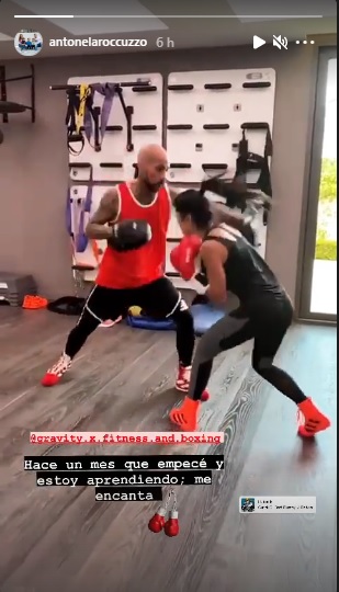 La mujer, que vive con su familia en Barcelona, compartió algunas stories en su instagram. Se trata de un breve video en donde se la ve junto a su nuevo entrenador haciendo boxeo.
