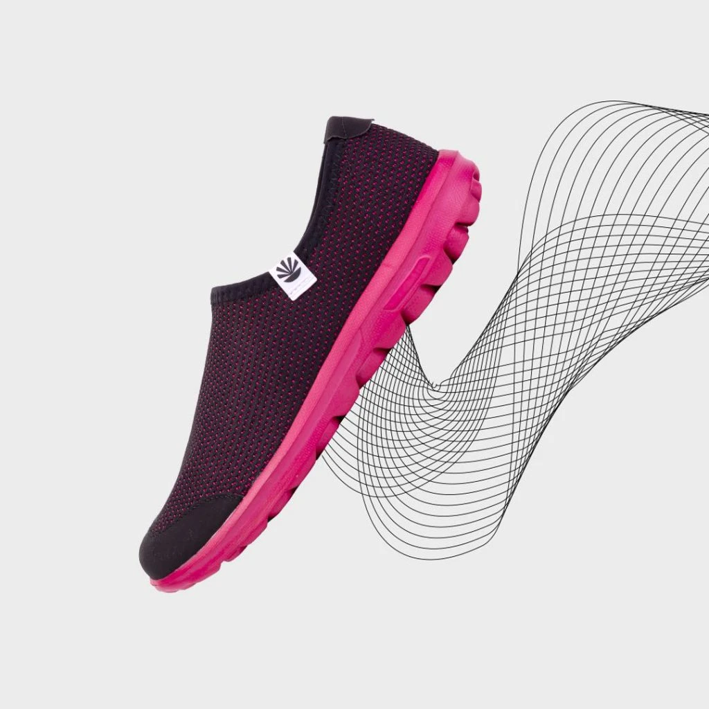 Kioshi desarrolla calzados apostando a la tecnología de máquinas alemanas, que otorgan confort y seguridad. A diferencia de las zapatillas deportivas tradicionales, al ser tejidas adoptan la forma del pie y se sienten como una media.