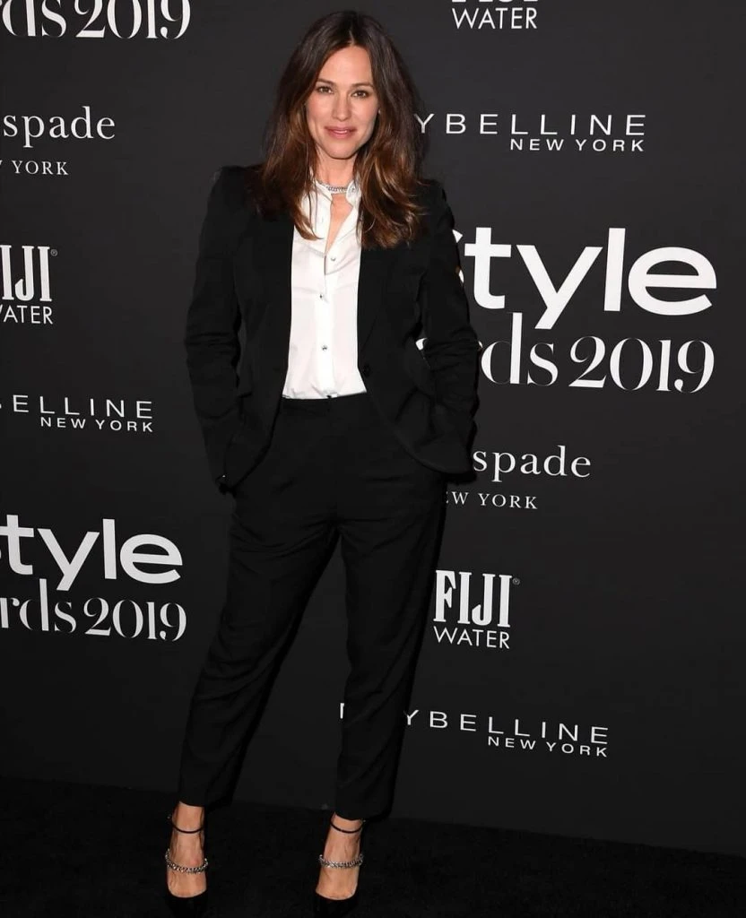 Jennifer Garner eligió el traje masculino. Le sumó una gargantilla con cadena, detalle que se repite en los stilettos.