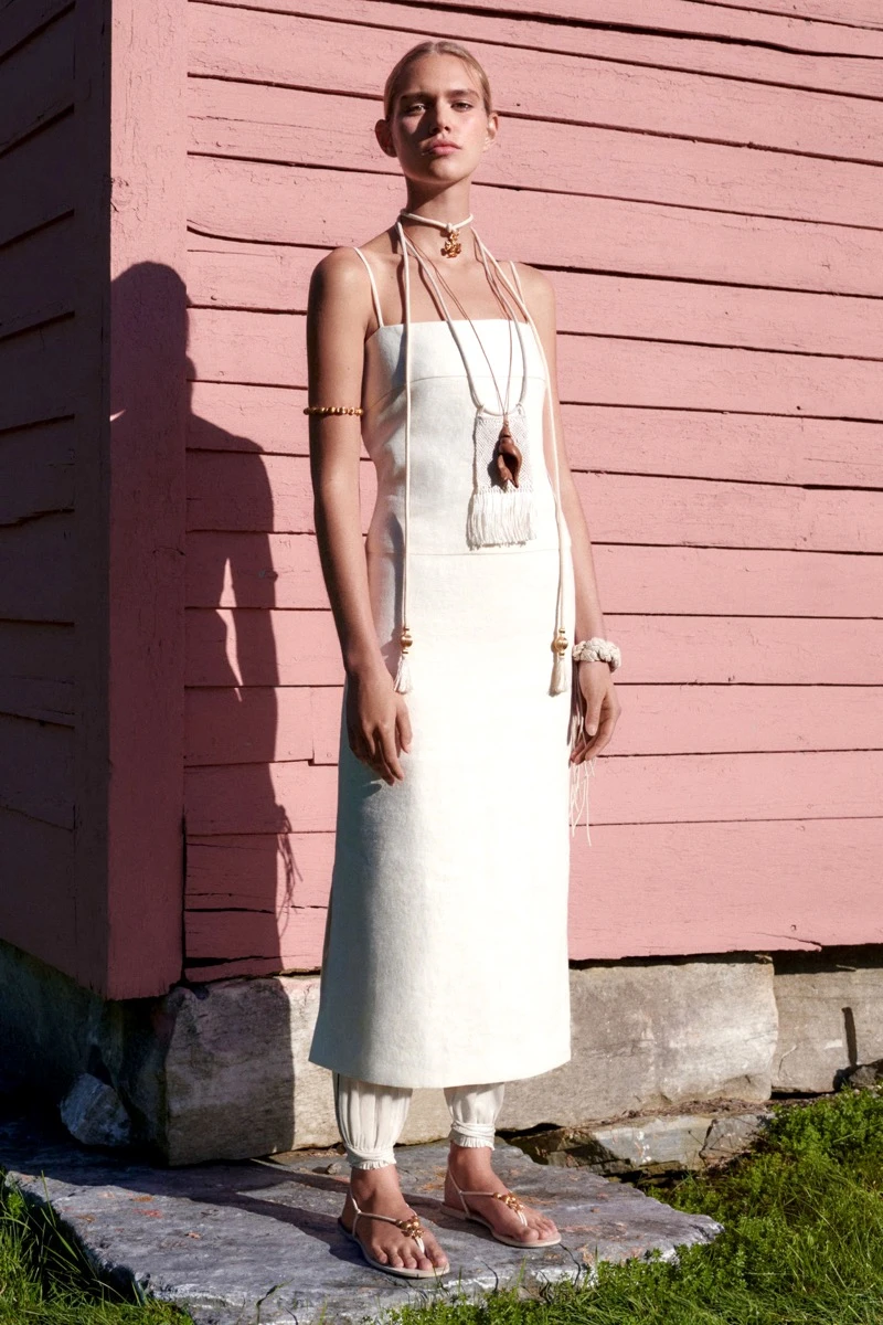 Siluetas clásicas y relajadas se equilibran con texturas delicadas como el algodón, el poplín y la seda.