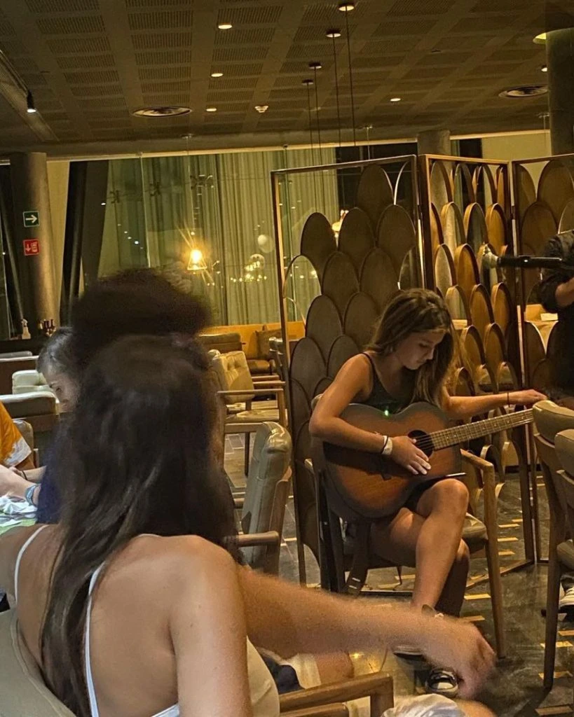 Delfina, su hija, cantó con su guitarra y conmovió a todos con su dulce voz.