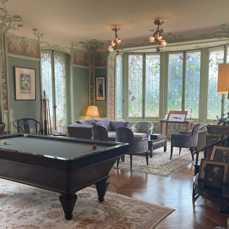 La chimenea no es la original, sino que es una réplica. Además la casa original no era así: fue George, el hijo de Louis, el que amplió esta casa y la transformó en una mansión de estilo art nouveau añadiendo muchos detalles decorativos inspirados en la cultura japonesa.