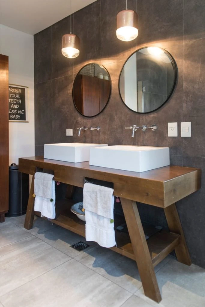 Sobre las mesas ratonas gemelas de cemento alisado se ubican diferentes objetos decorativos y el detalle de las velas, decorando y armonizando los ambientes (@llum.velas).