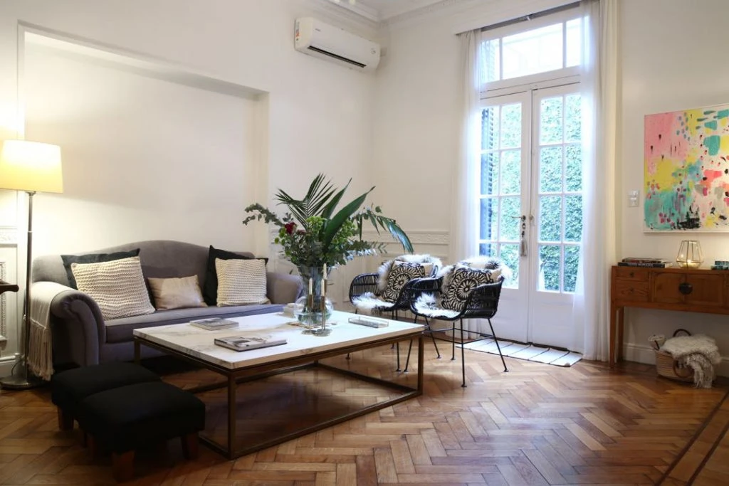 Reforma mediante, la primera misión de Sam Ortega fue darle luminosidad al living. Optó por blanco para las paredes y eligió muebles que rompieran con el estilo de época para proponer una estética fresca y actual.