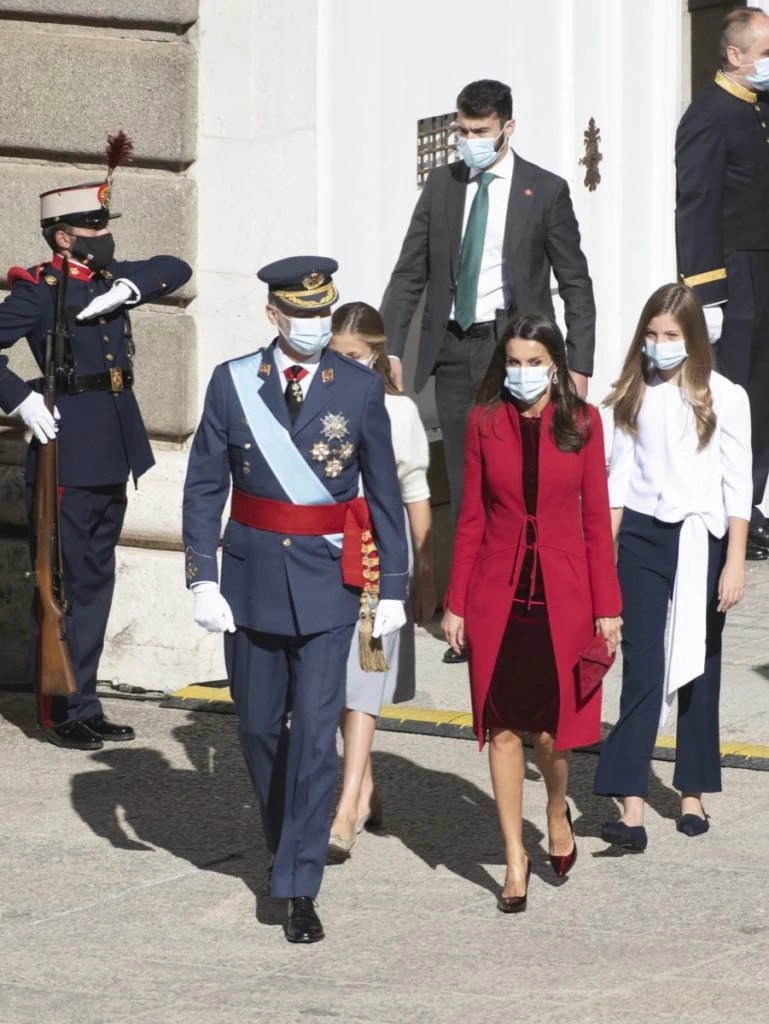 La familia real presidió la celebración del Día de la Hispanidad de una manera muy atípica a causa de la pandemia del Covid-19. Pero a pesar de ello, la reina de España desplegó toda su elegancia y glamour vistiendo de color rojo.