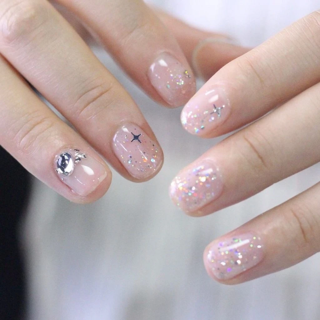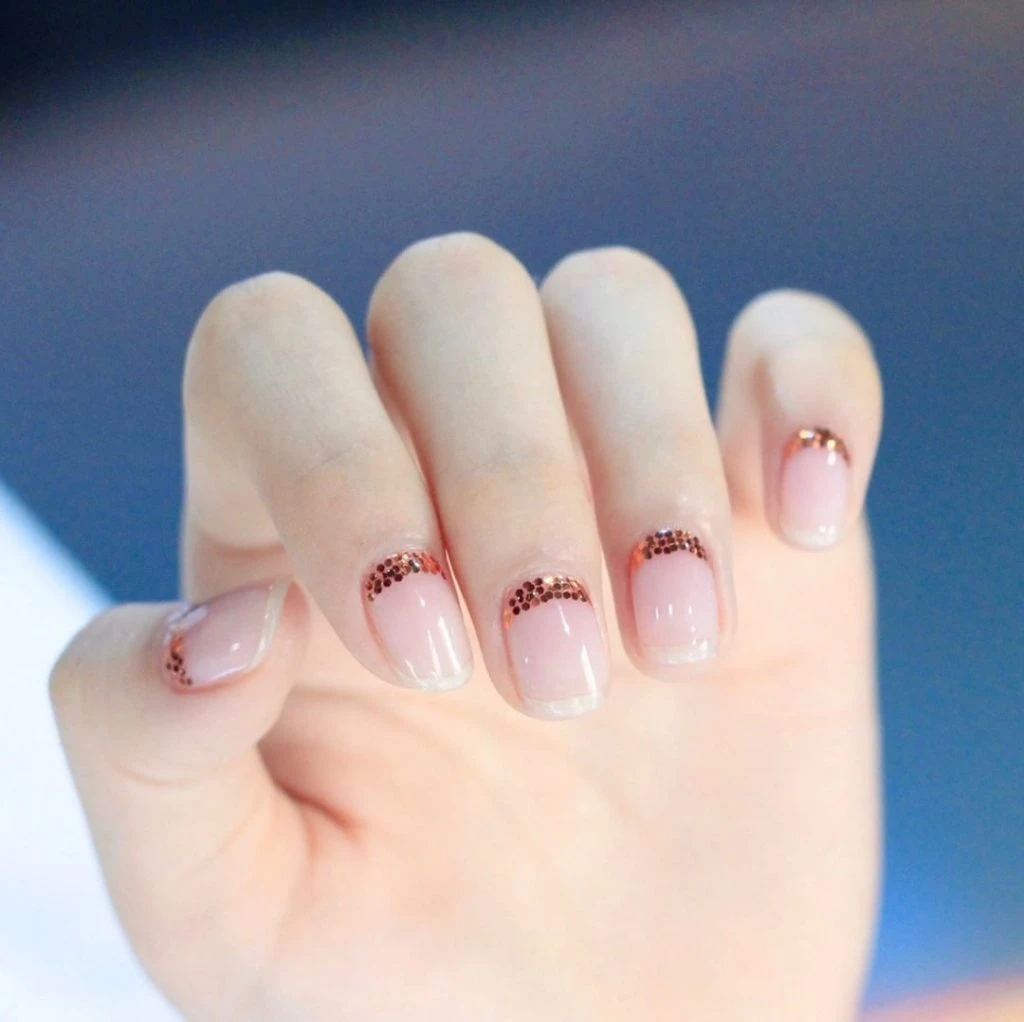 - Paso 3. Colocá un poco de top coat, pegá el glitter o los cristales.