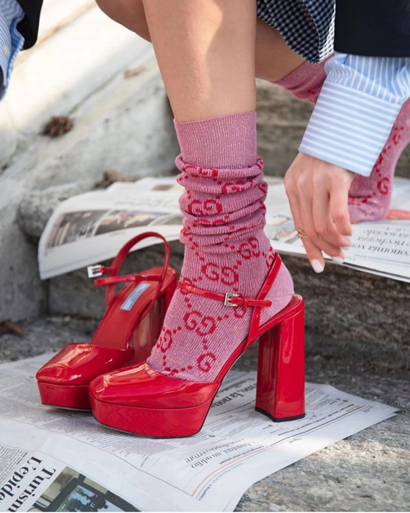 Los soquetes se unen a las sandalias y juntos inventan un look de impronta sorprendente y, por que no, muy cool.