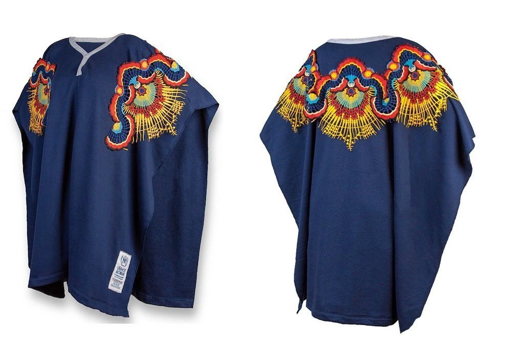 Pero no es una prenda más: el poncho nos protege, nos iguala. "ACNUR me convocó para esta acción del poncho azul y yo doné el diseño", explica Benito Fernández.