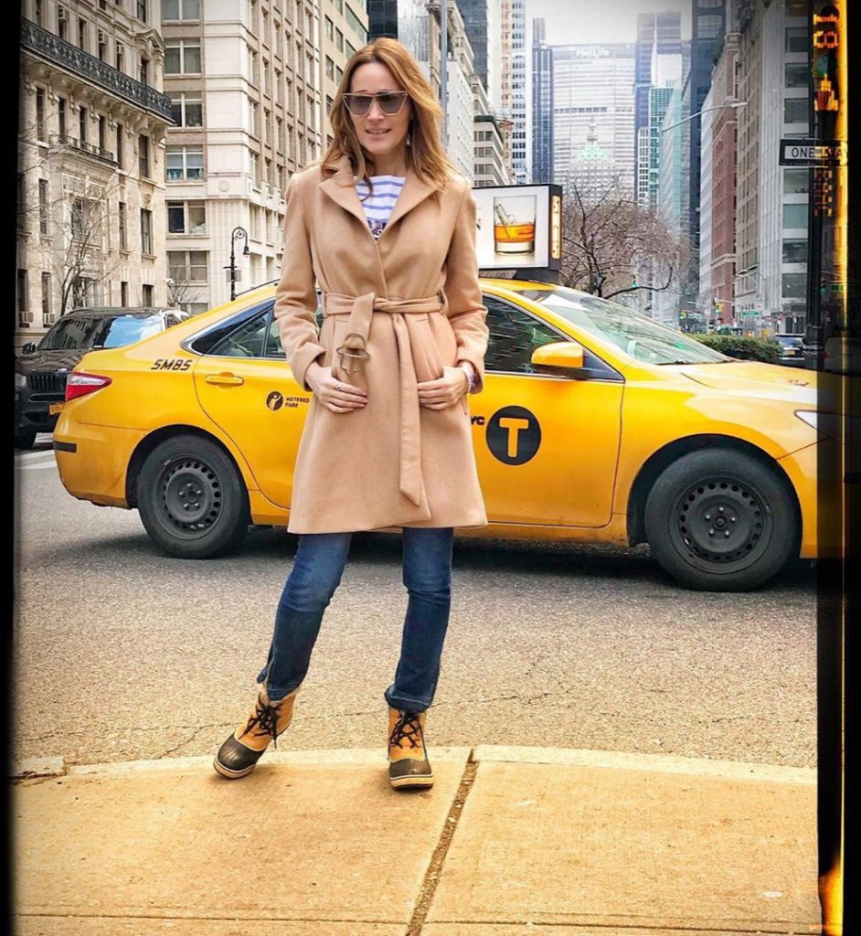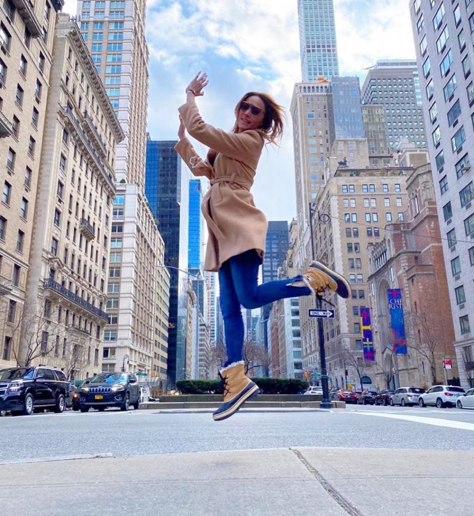 Es el protagonista de moda excluyente de la imagen de Vero que llama la atención por la perfecta armonía de tonalidades de la hermosa ciudad de Nueva York en el fondo, y al frente la conductora, que cada día posa mejor con sus outfits.