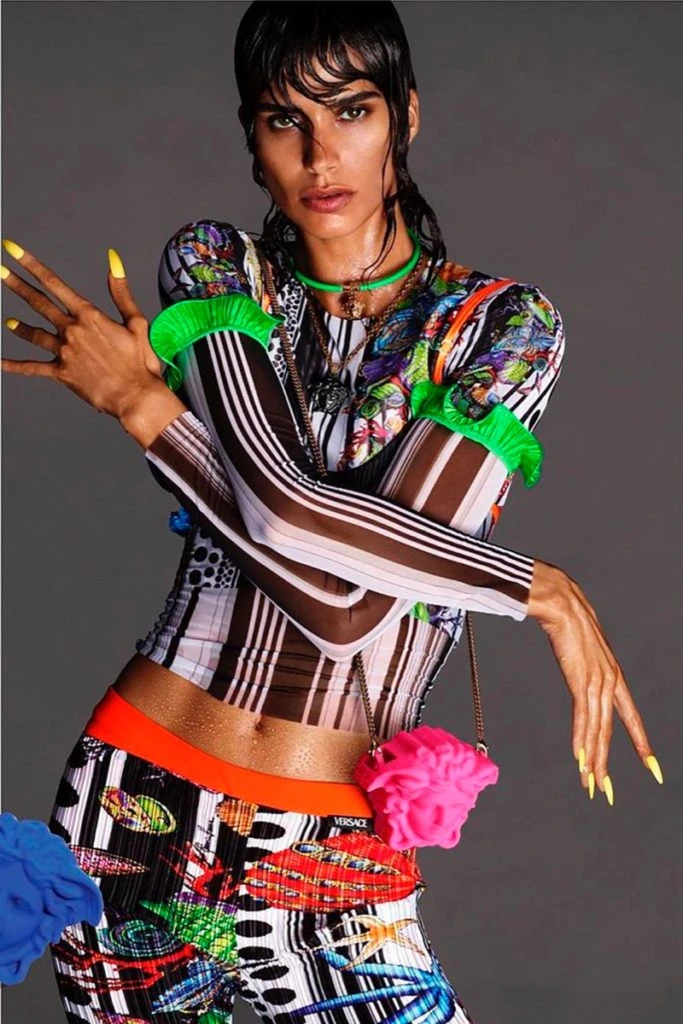 Las súper modelos Mica Argañaraz, Kendall Jenner, Mona Tougaard, Hailey Baldwin y Precious Lee fuero las protagonistas de la nueva campaña de primavera verano 2021 de la etiqueta Versace.