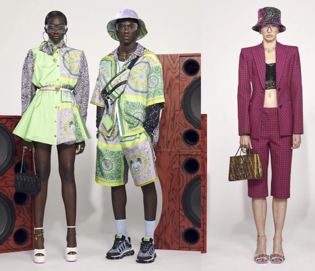 Mini vestidos acampanados, faldas plisadas, bermudas, camisas oversize reflejan una moda llena de glamour auténticamente Versace.