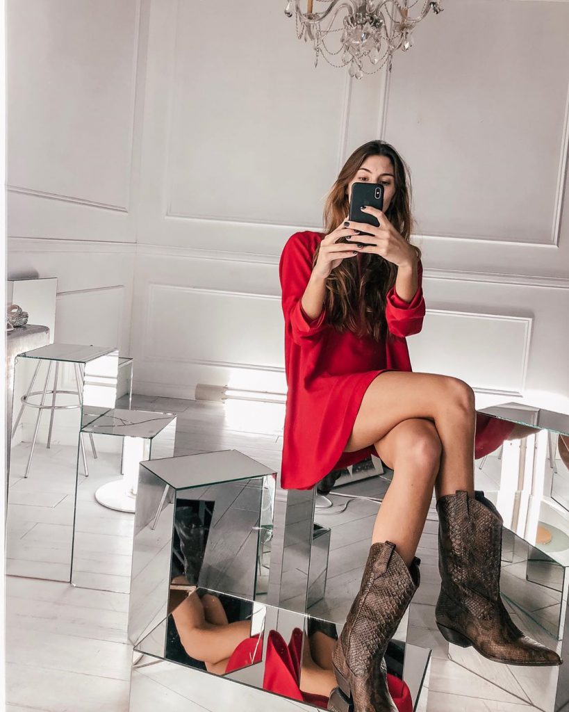 Pero esta vez, te proponemos el look perfecto que marca tendencia 2020: el vestido se acorta y se lleva con texanas.