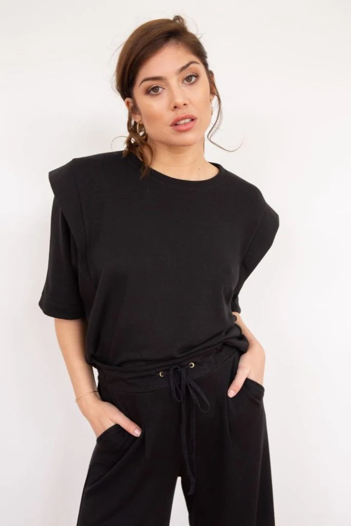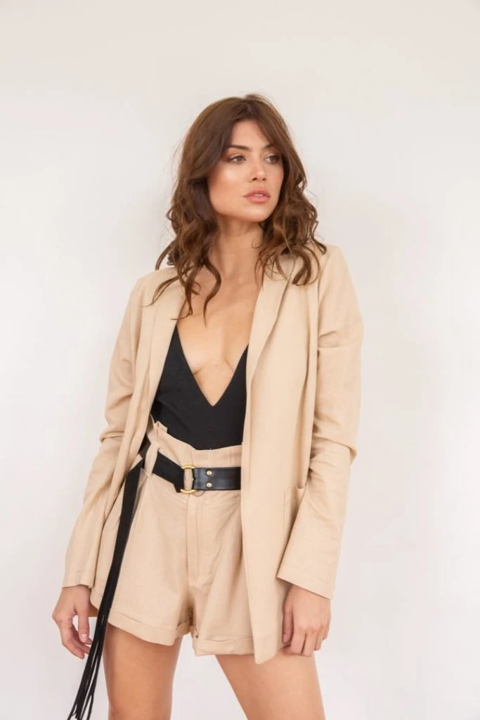 Blazer de crepe con bolsillos, mangas crop con charreteras $ 1.800 y