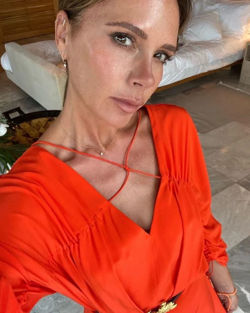 Los Beckham organizaron una salida romántica. Victoria eligió vestirse de naranja shocking. Audaz y llamativo es el color más atrevido de la paleta cromática.