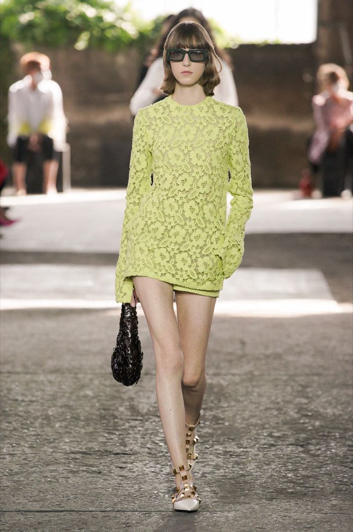 Pierpaolo Piccioli no ha dejado de lado los transparencias y los vestidos de noche en colores vivos y llamativos como el rojo, el verde o el amarillo.