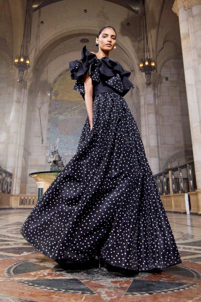 "La moda es otra forma de celebrar la belleza de las ocasiones especiales, y de convertir los momentos cotidianos en extraordinarios. Y en esta ocasión, quería que todas las prendas fueran inequívocamente Herrera: los colores aún más saturados. Los volúmenes todavía más voluminosos. Los cortes sastre más femeninos que nunca. Las mangas totalmente dramáticas. Polka dots por todas partes y bordados luminosos. La luminosidad es la cantidad de energía que una estrella emite desde su superficie. Me fascina esta palabra y la idea de medir el brillo y el resplandor", así definió la colección Wes Gordon.