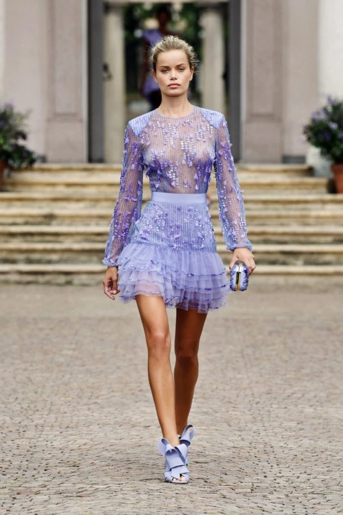 Para esta primavera, presentó su colección con un desfile a puertas cerradas, en una majestuosa villa rural con un jardín inglés lleno de hortensias.
