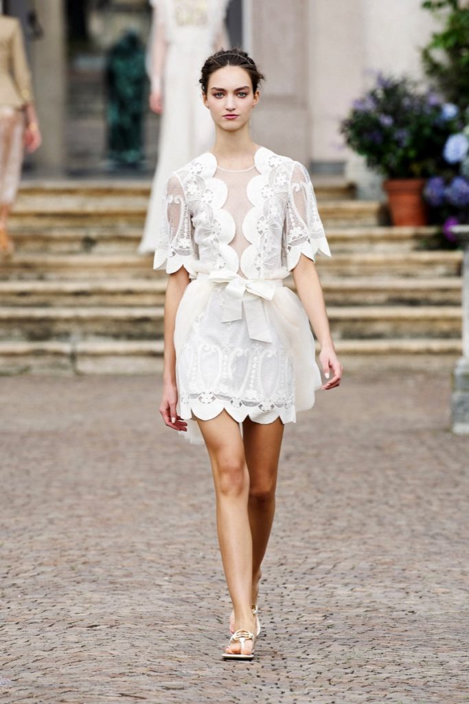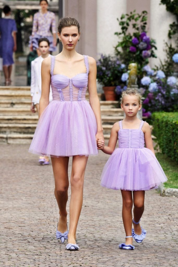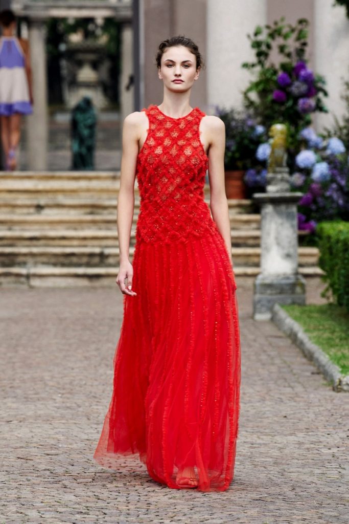 Para esta primavera, presentó su colección con un desfile a puertas cerradas, en una majestuosa villa rural con un jardín inglés lleno de hortensias.