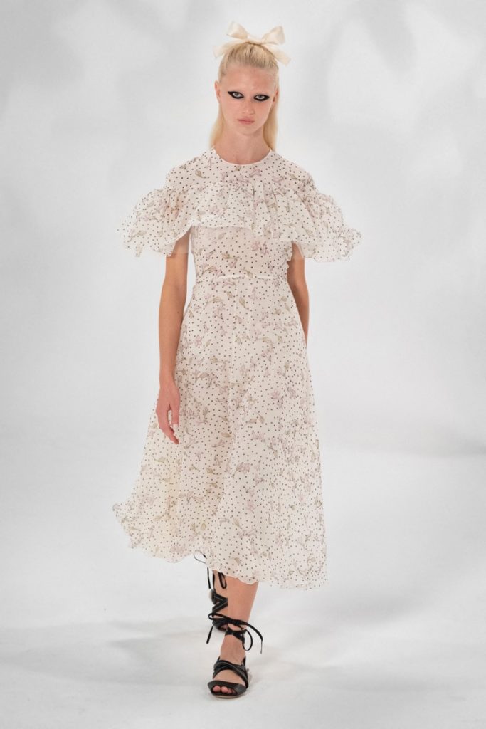 Allí se inspiró para recrear una colección más real y no tan de fantasía, tranfiriendo los motivos florales a delicados estampados que se imprimieron en vestidos y en blusas como si se hubieran pintado a mano.