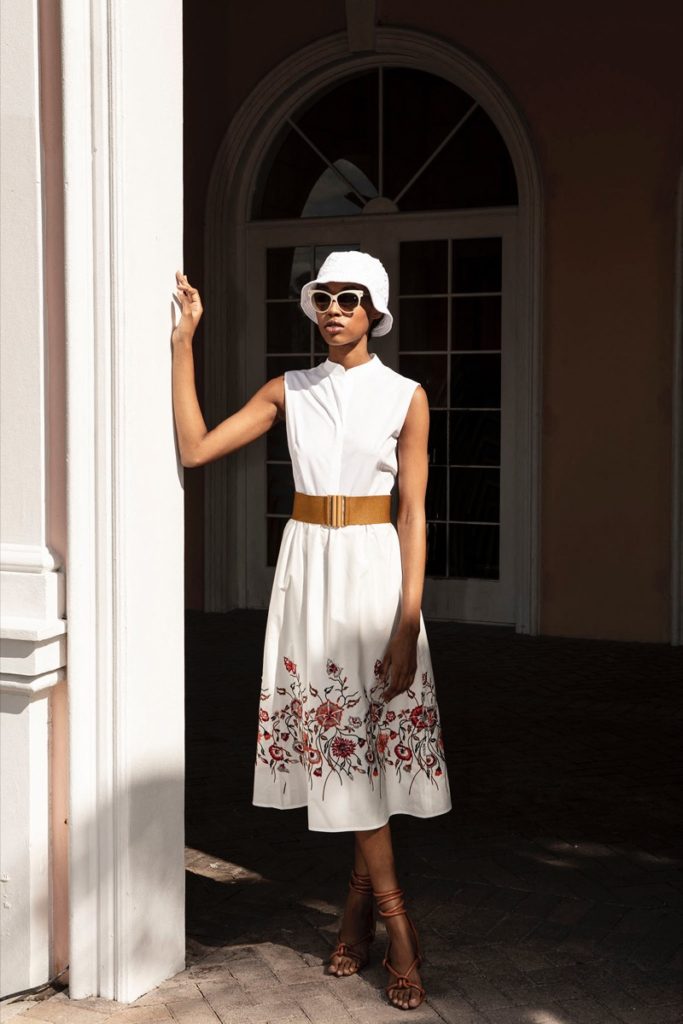 La colección presentaba bordados a mano, detalles florales cortados con láser y abundantes estampados (rayas y diseños geométricos).