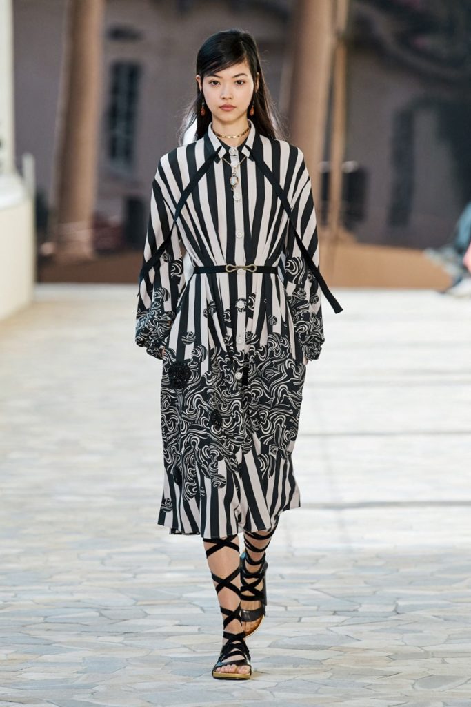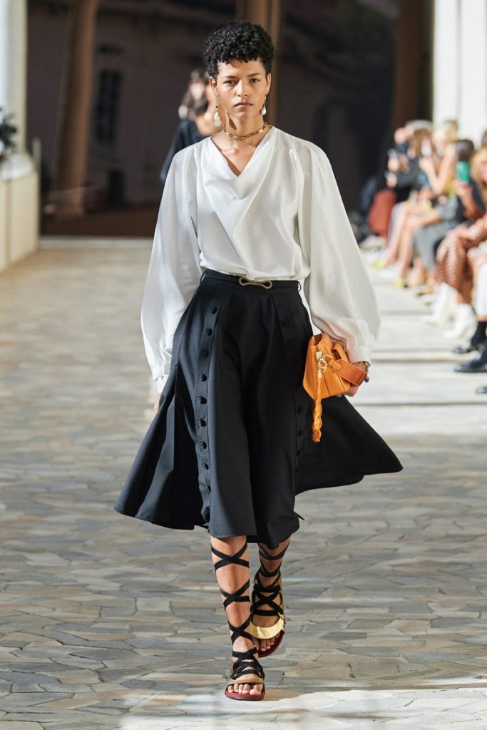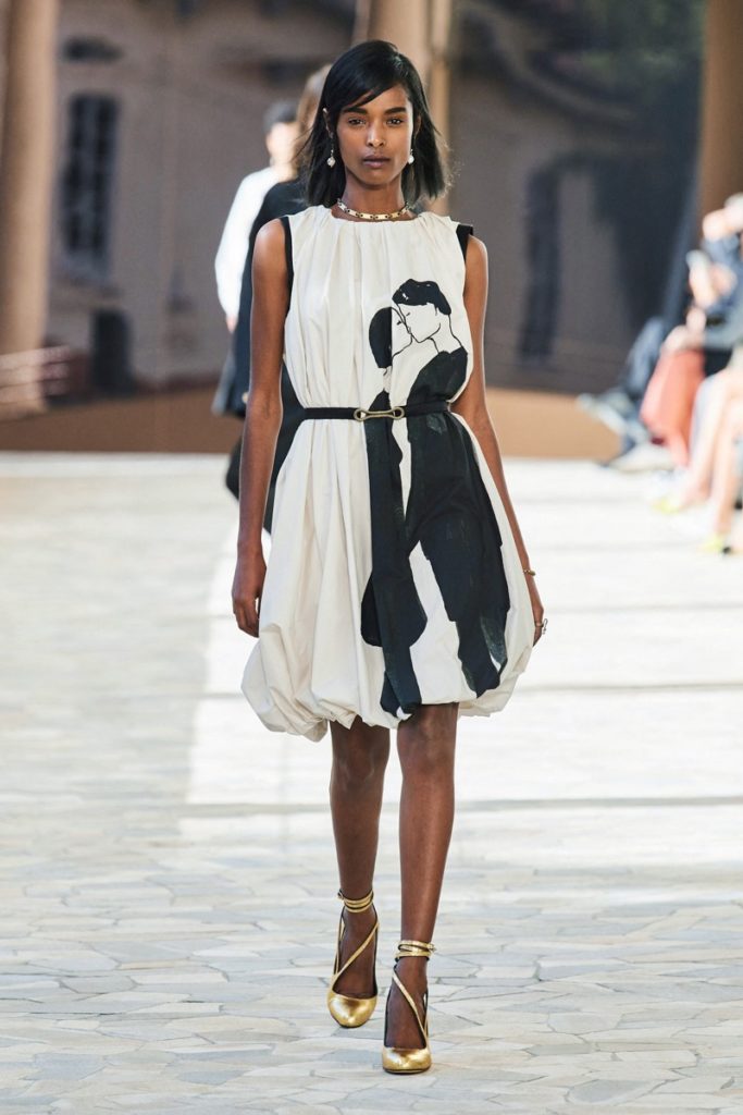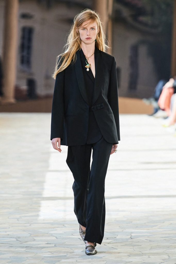 La colección presenta prendas fluídas con movimiento que acompañaban el caminar de las modelos sobre la pasarela.