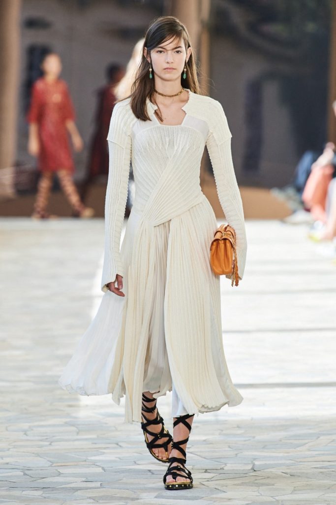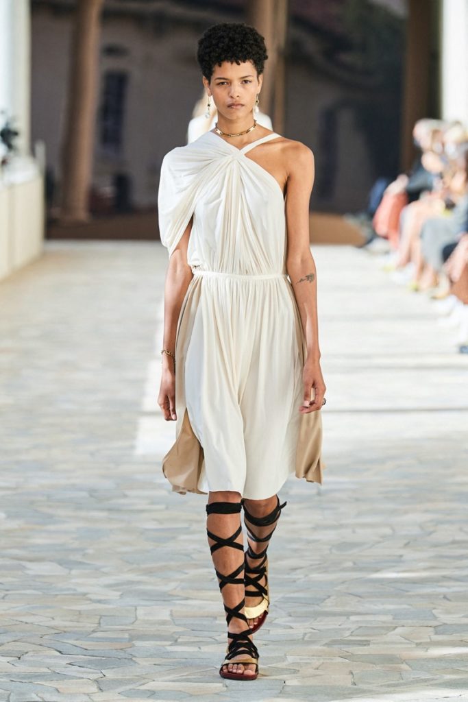 Prendas elegantes, relajadas y sobre todo confortables con gran influencia romana y griega: drapeados asimétricos y líneas abstractas.