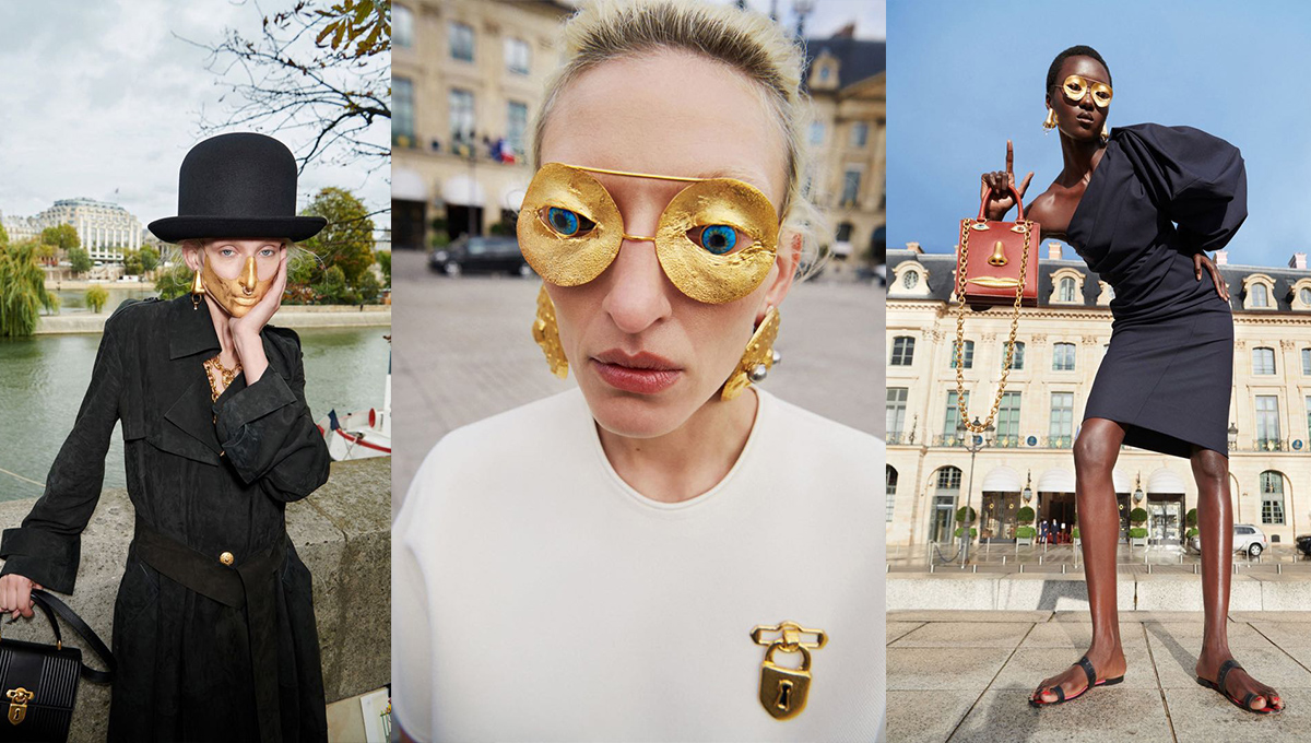 En estas semanas de la moda "modo pandemia", las marcas están poniendo toda su creatividad a la hora de presentar sus nuevas colección. Daniel Roseberry, al frente de Schiaparelli, apostó a anteojos-joya con ojos de esmalte, máscaras doradas cubrían la nariz y la boca, garras de los dedos para "adornar" a sus modelos con diseños atemporales.
