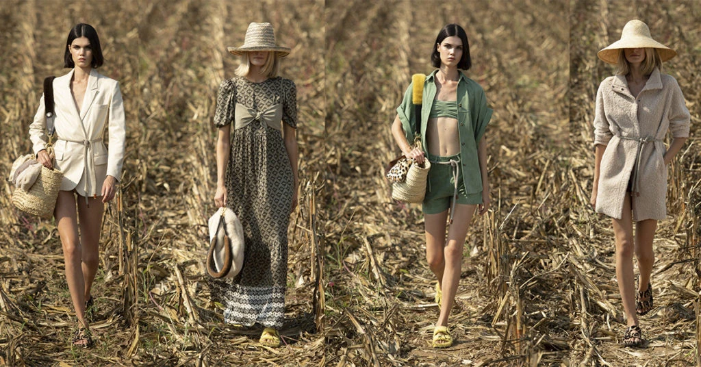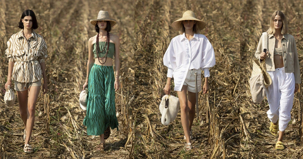 Simonetta Ravizza presentó su colección en medio de un campo recién cosechado. Su propuesta es ideal para los días más calurosos del verano.