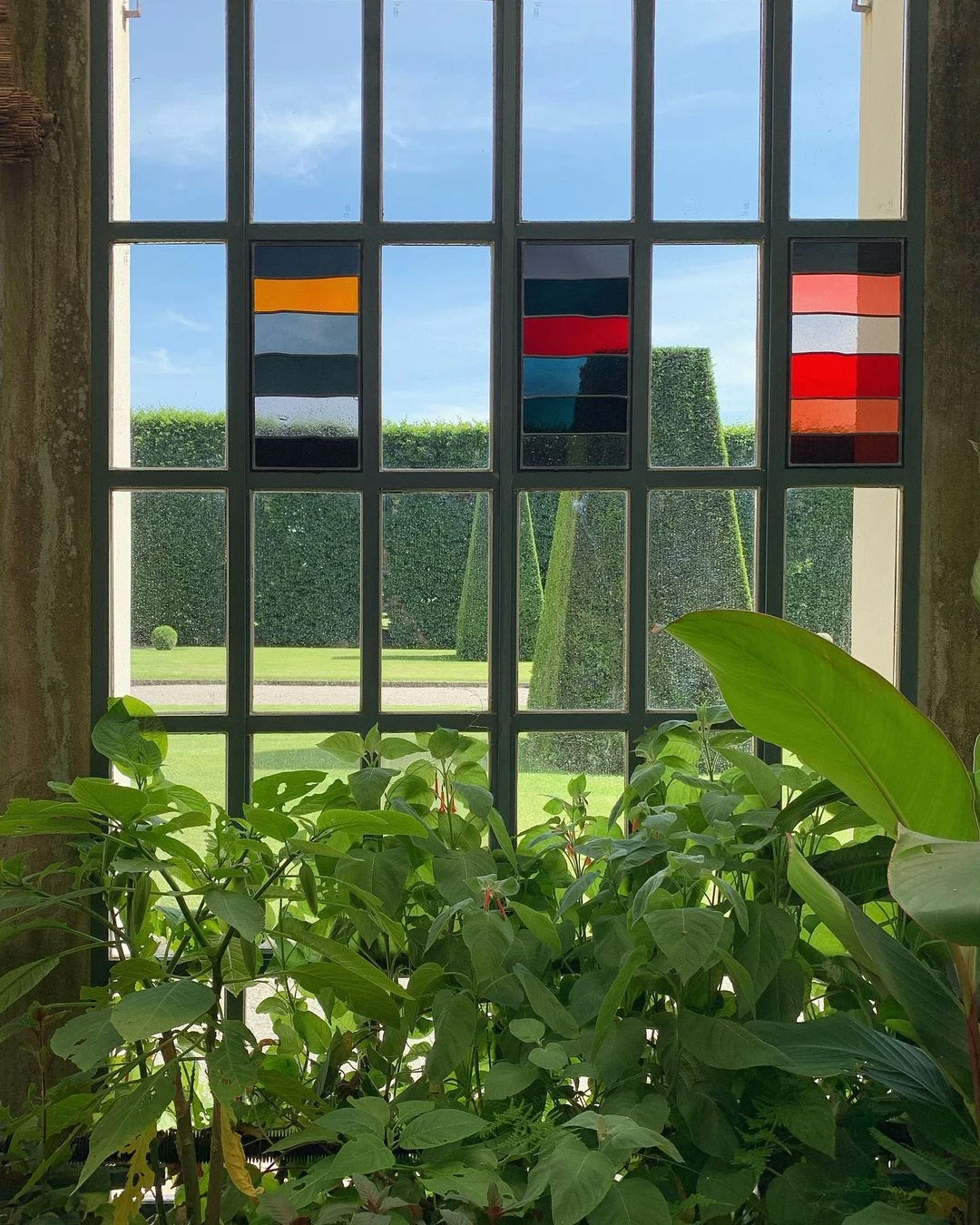 En el galpón del campo el uso del vidrio repartido y de color creó una especie de juego geométrico en las ventanas, que a la distancia parecen pinturas abstractas