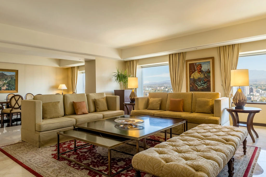 Además de ser un edificio imponente, llama la atención por tener obras de arte en todos sus espacios y un rooftop con una privilegiada vista hacia la cordillera de los Andes.
