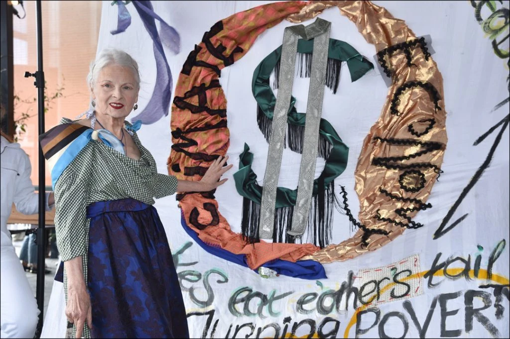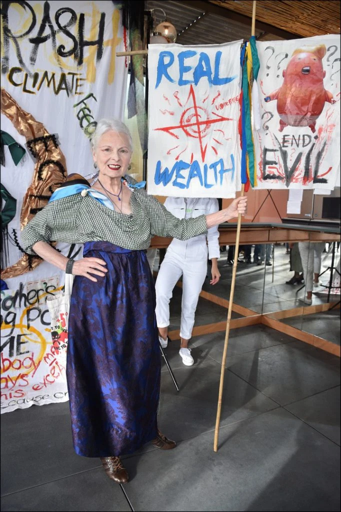 Recientemente Vivianne Westwood participó en “Cambiemos la moda” (#changeonsdemode) en Galeries Lafayette, una campaña que apunta a promover iniciativas ecoresponsables alrededor de la moda y alineadas con los conceptos “sin vender” y “Go for Good” que promueven el reciclado, la reutilización y la circulación –y no el consumo- de la ropa en beneficio de personas más necesitadas y del medio ambiente.
